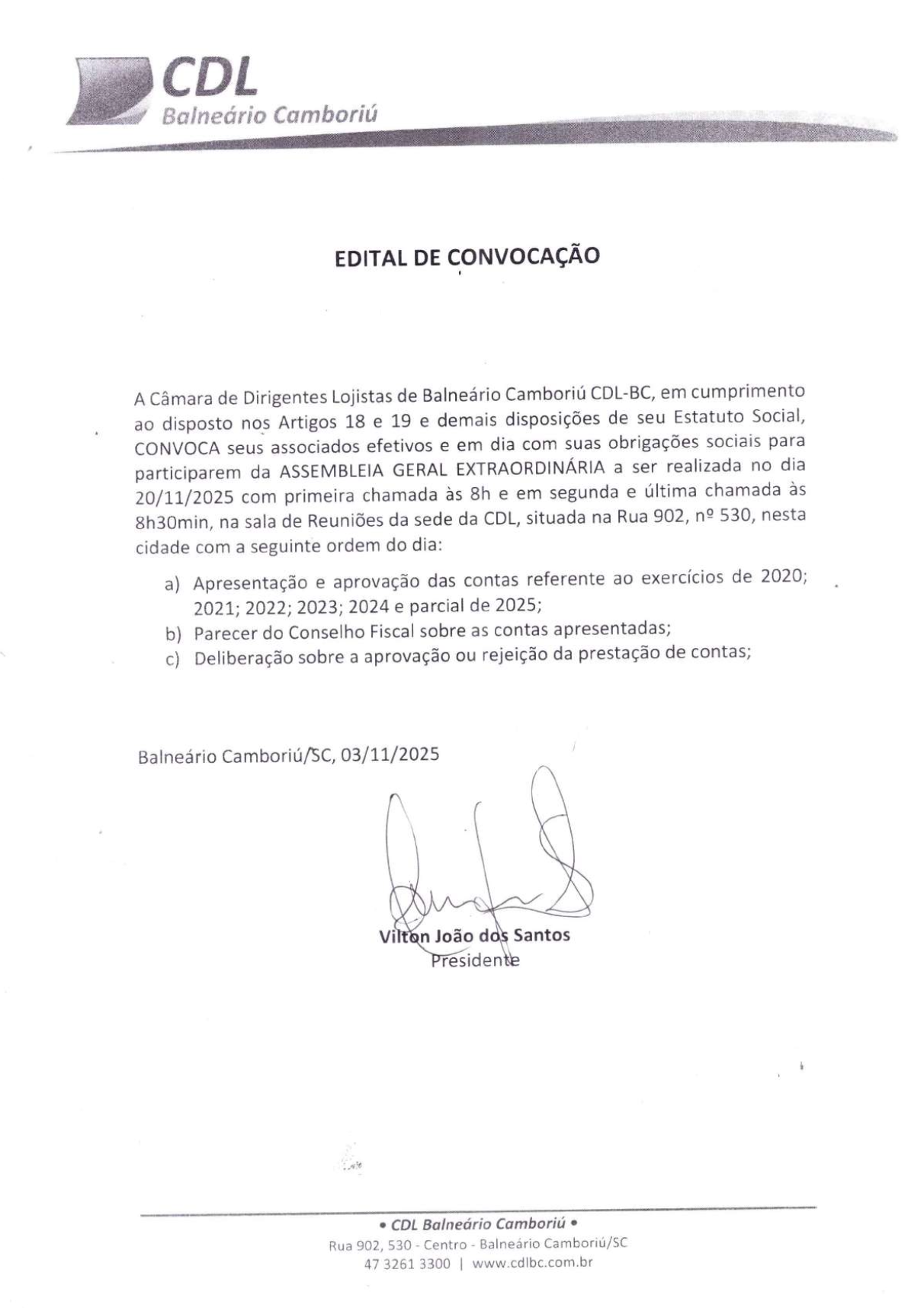 Rua 902, 530 – Centro – Bal. Camboriú/SC cdl@cdl-bc.com.br 47 3261 3300