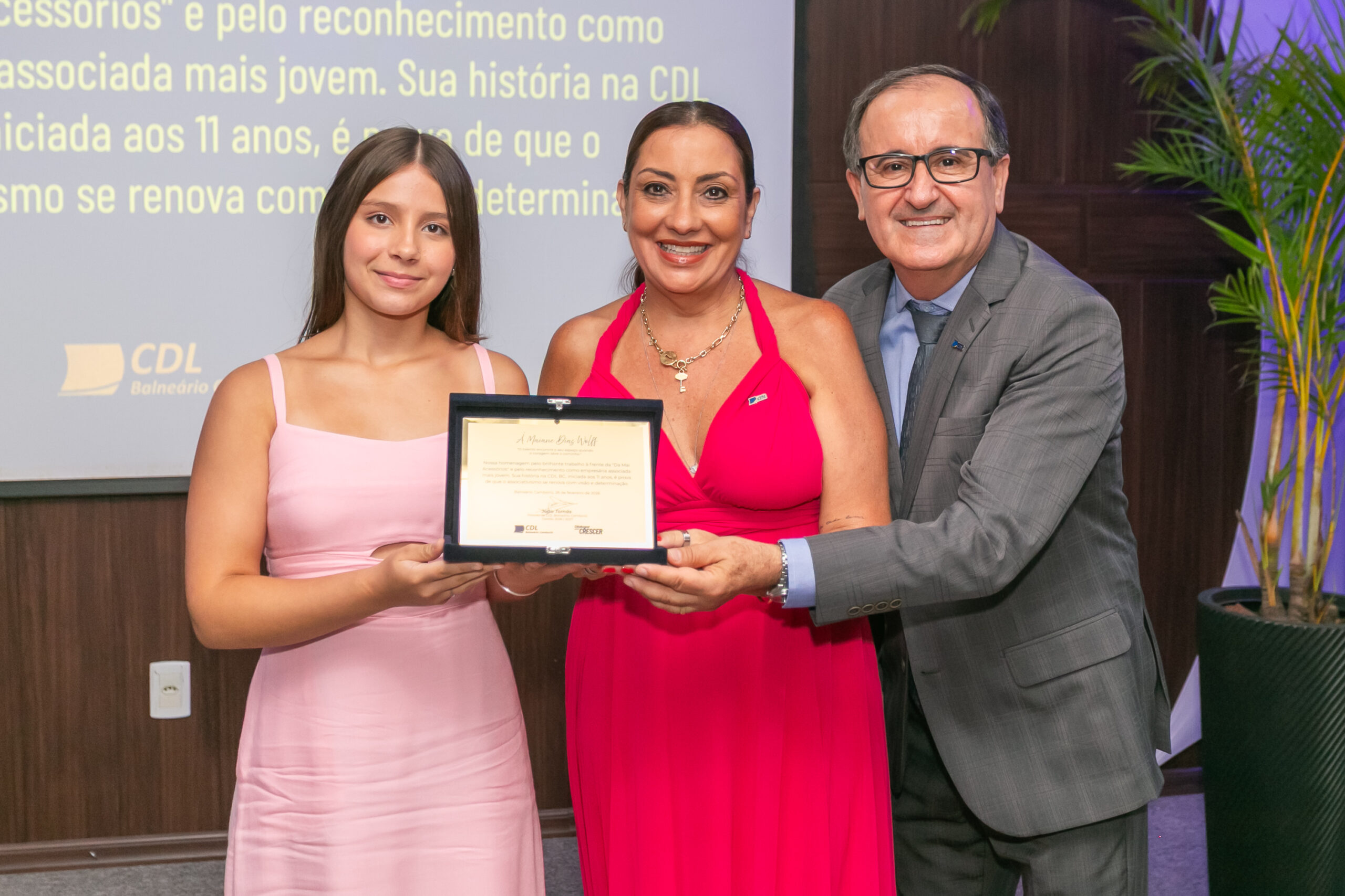 O futuro do empreendedorismo também foi reverenciado através da jovem empresária Maiane Wolff, da Da Mai Acessórios, associada à entidade desde os 11 anos de idade. A família também teve papel central, com homenagens especiais à mãe de Vilton Santos e a troca de carinho entre as esposas, Cissa Sutil e Dorotéa Mafra Pereira. Por fim, os colaboradores da CDL, representados pela gestora Paôla Campagnolo, homenagearam Vilton Santos pela liderança dedicada.